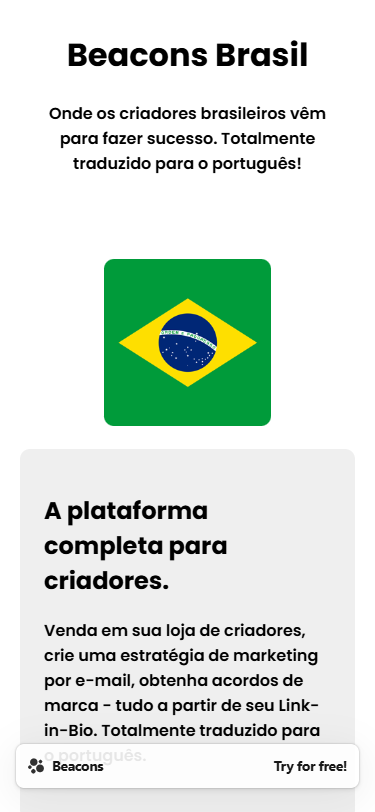 Crie um link-in-bio bage do Beacons.ai gratuitamente. Totalmente traduzido para o português!