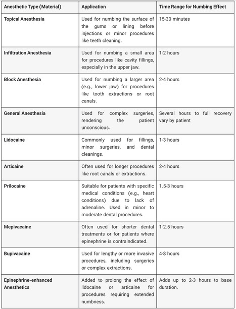 Dental numbing plays a vital role in ensuring patient comfort during dental procedures, but many people wonder how long the effects will last. In this guide, I explain the key factors that influence the duration of dental anesthesia, such as the type of anesthetic used, the procedure performed, and individual patient factors.